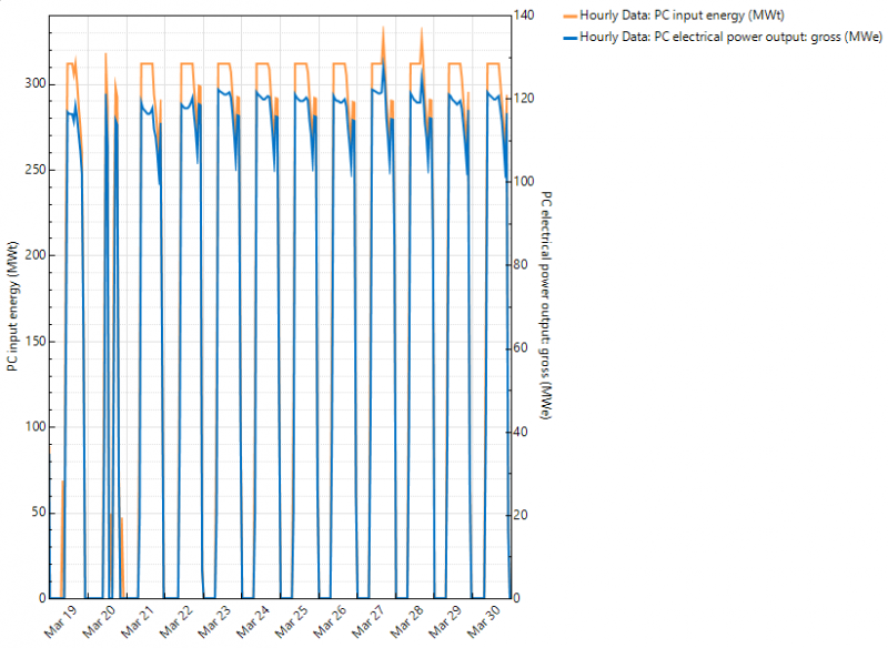 and compared it to the "PC electrical power output: gross" I am obtaining 8% larger value for the gross vs the manual computations which is leading me to believe that there's a certain boiler back-up of 8% being added to the PC input energy.