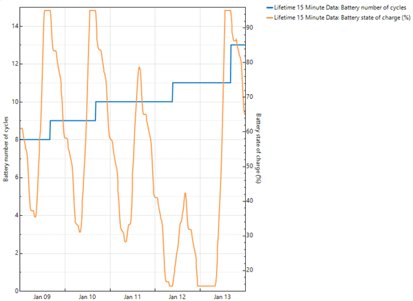 However, when looking at the time series, its seems that sometimes the cycle number is increase by steps of 3 (see figure attached) although only one charging/discharging cycle appears on the battery SoC. Note that I have 15-min resolution power profiles.