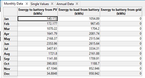The same observation can be made on the monthly data, where the energy to load from battery is much higher than the one to battery from PV.