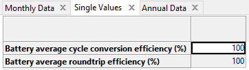 Finally, it seems to affect the conversion and roundtrip efficiency too. Indeed, they seem to saturate at 100% since the energy delivered by the battery is much higher than the supplied.