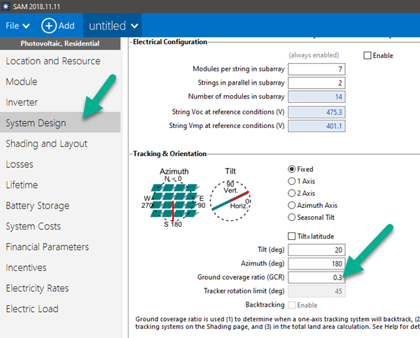 How do you set the GCR in a SAM detailed PV analysis? was created by Rob Frohne