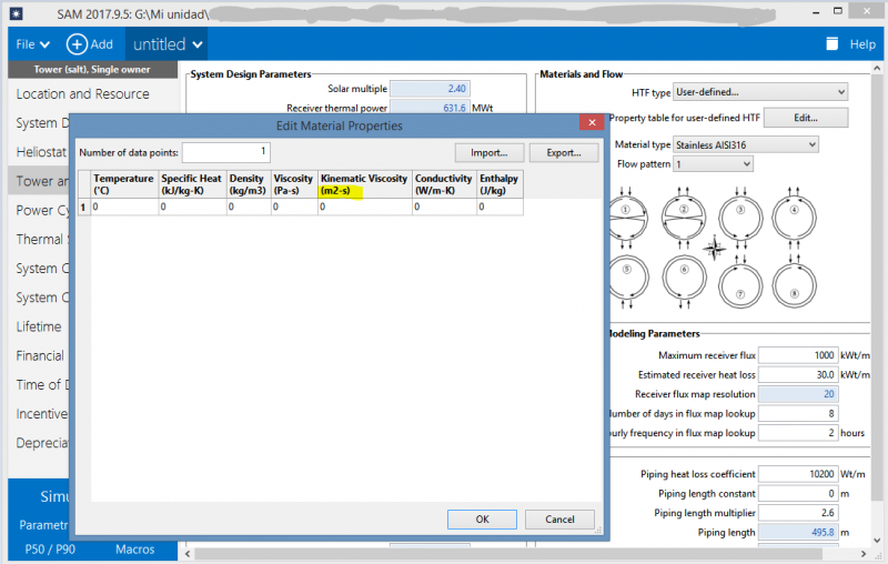 I was diving in SAM, and in the section of User-defined HTF type in the Tower (salt) Single Owner I have some doubt.
