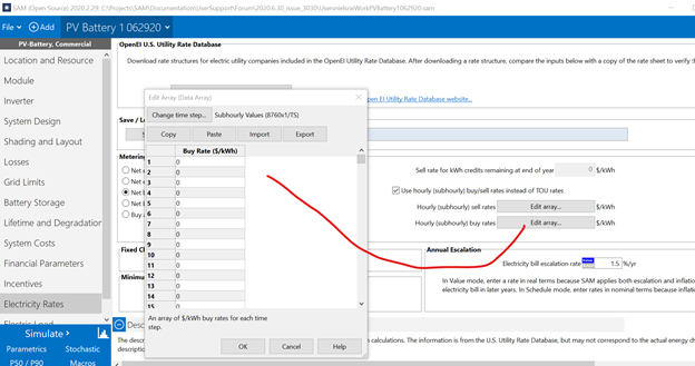 and check Use hourly (subhourly) buy/sell rates instead of TOU rate,