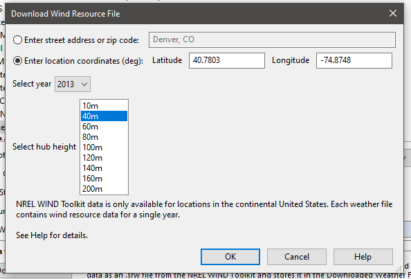 The time stamps don't really matter for the wind power model itself: It starts the simulation with the first row and ends it with the last row. It does require that the file contain one year's worth of data. For hourly data the file should have 8760 rows of data, but it would also work with 15-minute data if it had 35,040 rows. It would also work if Row 1 started with data for any day of the year, as long as the data is for one year: For example, the data could start (row 1) on May 15, 2018 and end on May 14, 2019 (row 8760 for hourly data).