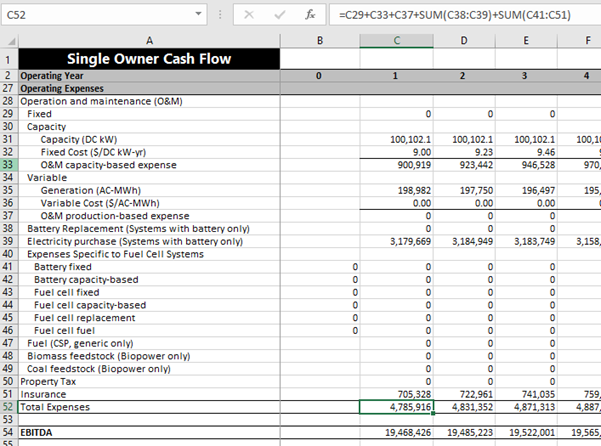 My SAM version is 2020.2.29. I find it's difficult to interpret the total operating expenses ($) in the cash flow for the SAM project attached.