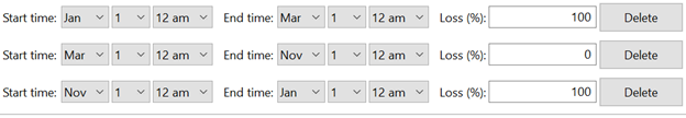 I think the correct way to specify availability losses to cover the period from November 1 to February 28 would look like this: