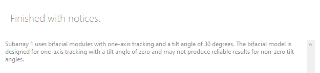 I am still getting the message "The bifacial model is designed for fixed arrays and may not produce reliable results for tracking arrays." when I use PVWatts to simulate a single-axis bifacial module with 0 tilt. Should I ignore this warning as the previous replies here suggest or has something changed in the last few years that I should be aware of?