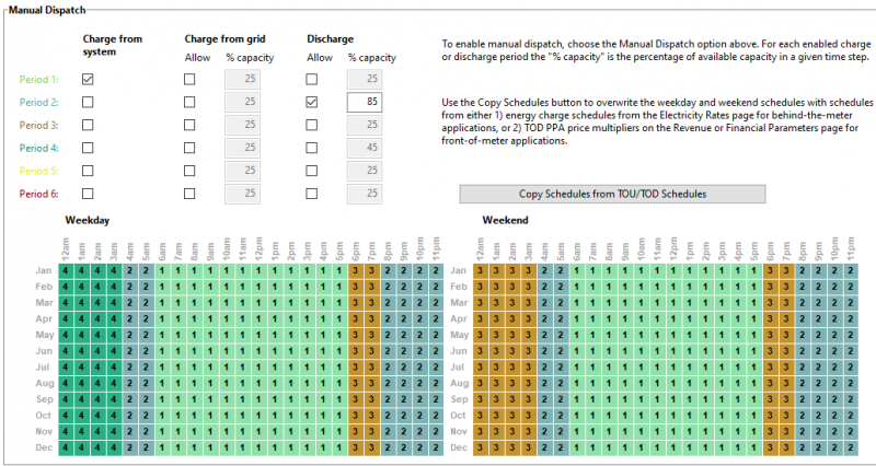 this is to ask for advice about the use of battery storage and battery dispatch in within an modeled pv-battery comercial system.