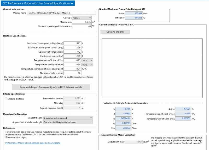today I've tried adding a PV Modul to SAM. The specifications are from the manufacturer of the module. After entering