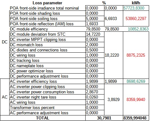 I have the following losses (there's no shading losses):