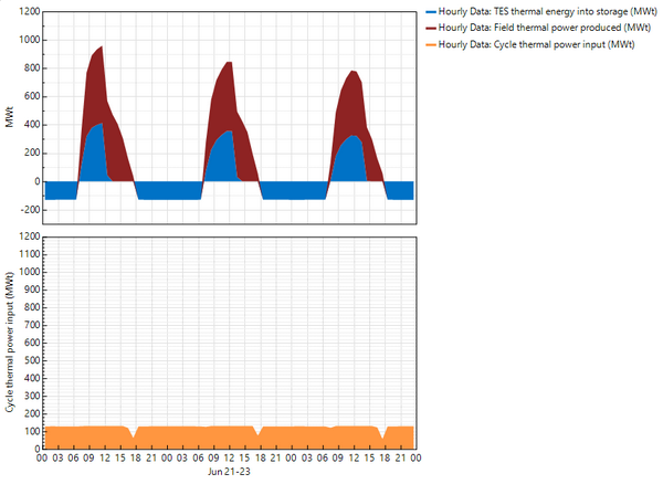 I am simulating Linear Fresnel Reflector, and found that the sum of the hourly thermal energy into TES (MWt) is negative over the year!!