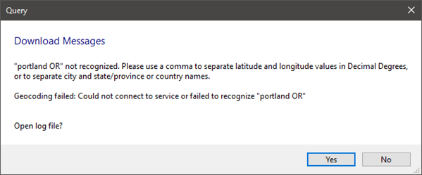 This error is due to the way SAM attempts to recognize location names. Try using "Portland, OR" with a comma separating the city name and state abbreviation instead of "Portland OR" without one. If you type "Portland OR" in the current version of SAM 2021.12.02 r2, you should get this error message:
