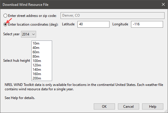 For wind models, the workaround is to use the latitude and longitude option (you can right click a location in Google Maps to find its latitude and longitude):