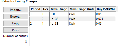 exec fail(lib_utility_rate_equations): The energy rate table defines 2 tiers, but one or more periods have 1 tier. All periods must have the same number of tiers.