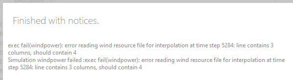 I am trying to run a wind data file. The simulation starts running, but half way through it gives this error: