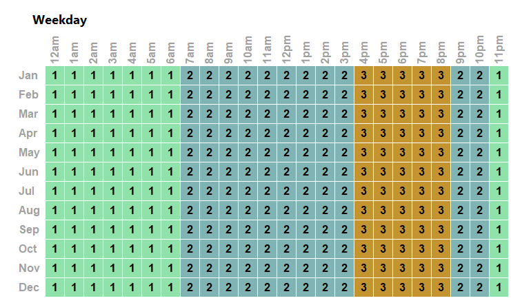 - Period 3: add $0.05/kWh for every kWh consumed