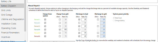 I am trying to model PV-Battery system with load data which allows us to export from the battery to the grid at a time when our rate for energy to the grid is very favourable. In South Africa our "peak" export rate is significantly higher than standard or off peak time so it will likely make financial sense to do this. I have modeled the system, loads and tariffs etc. but I cannot get the system to export energy from the battery from the grid. Is it possible to do this in SAM?