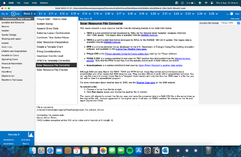 Replied by Emiliano Mejia on topic Error in Macro: As Built-complete.sam using a PVsyst CSV file