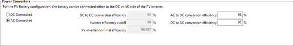 To specify an AC- or DC-connected battery use the option under "Power Converters:"