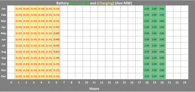 I modeled a solar plus battery using Detailed PV-Battery and discovered unexpected behavior during the months of April through September, as shown in the table below (see hour 6). This table displays average MW of charge (negative numbers) and discharge (positive numbers). During these months in hour 6, the average charge for hour 6 falls, resulting in a lower average charge for the month than for other months, however, the discharge remains unchanged. This design is a 4,400kW/8,800kWh battery. The problem was worse when I designed a 9,900kW/19,800kWh battery, as some of these months actually discharged more power than they had as available charge. My settings for these designs are LFP/Graphite battery type, min/max state of charge 20%/95%, and Manual Dispatch. Is this an error that I am creating somewhere, or is it in SAM? Thanks for any help.