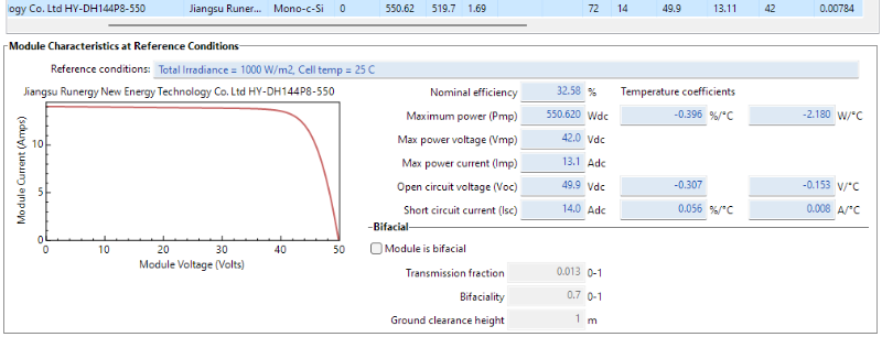 That is the closest datasheet to the module I can find, but the nominal efficiency on the datasheet is 21.3% which is significantly lower from what is shown on SAM. Besides, the datasheet states that the module is bificial.