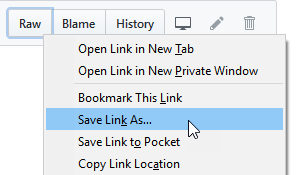 To download the file, click the file name in the list of sample scripts, and then right-click Raw in the toolbar above the script and save the script to your computer: