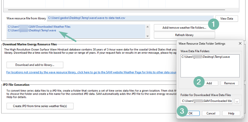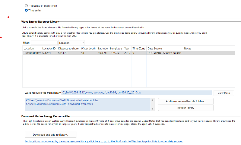 I would like to simulate the wave resources of a location in Norway. I have adapted the data to the format required by SAM but the file is still not working. I am not able to add the file to the library to simulate the resource.