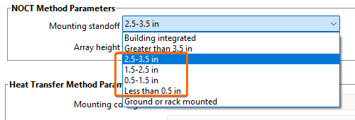 The source code that determines the adjustment for different standoff heights for the NOCT cell temperature model implementation in SAM is here: