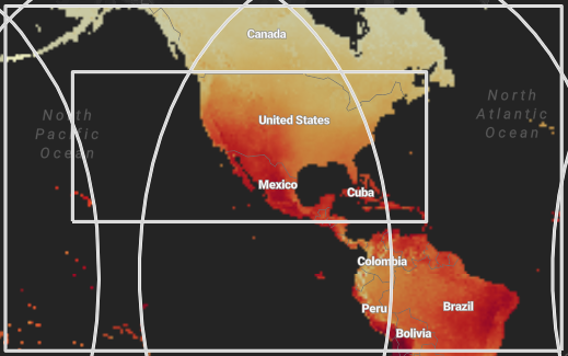 Both the PSM V3.2.2 and GOES V4.0.0 datasets cover the rectangle that includes much of North America, Central America, and part of South America: