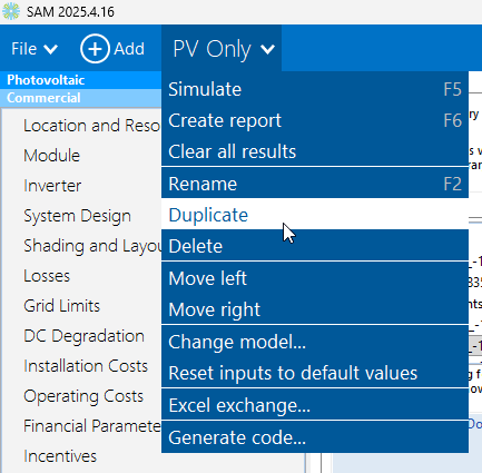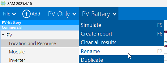So I have designed a PV system in SAM and now I want to add a Battery system to that design. I'm assuming I simply open the existing file and click on "Add" in the upper left corner then continue down and populate each category. Also i'm assuming when I run simulate and System Sizing Macro, it will add the necessary data to the financials. Are my assumptions correct?