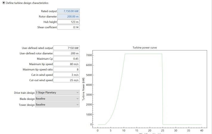 When I build a wind turbine model, firstly I use the SAM software and select "Define turbine design characteristics". The parameters are shown below: